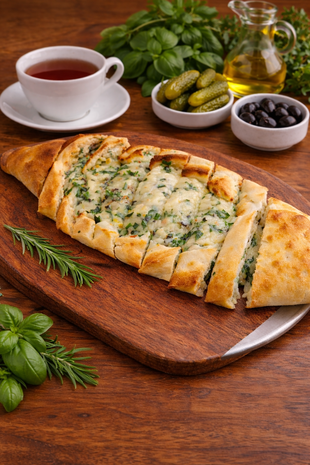 AKAWI CHEESE WITH PARSLEY SESAME SEEDS , BAKED ON OUR HOUSE-MADE FLATBREAD